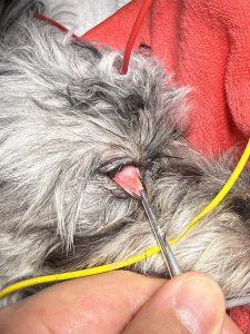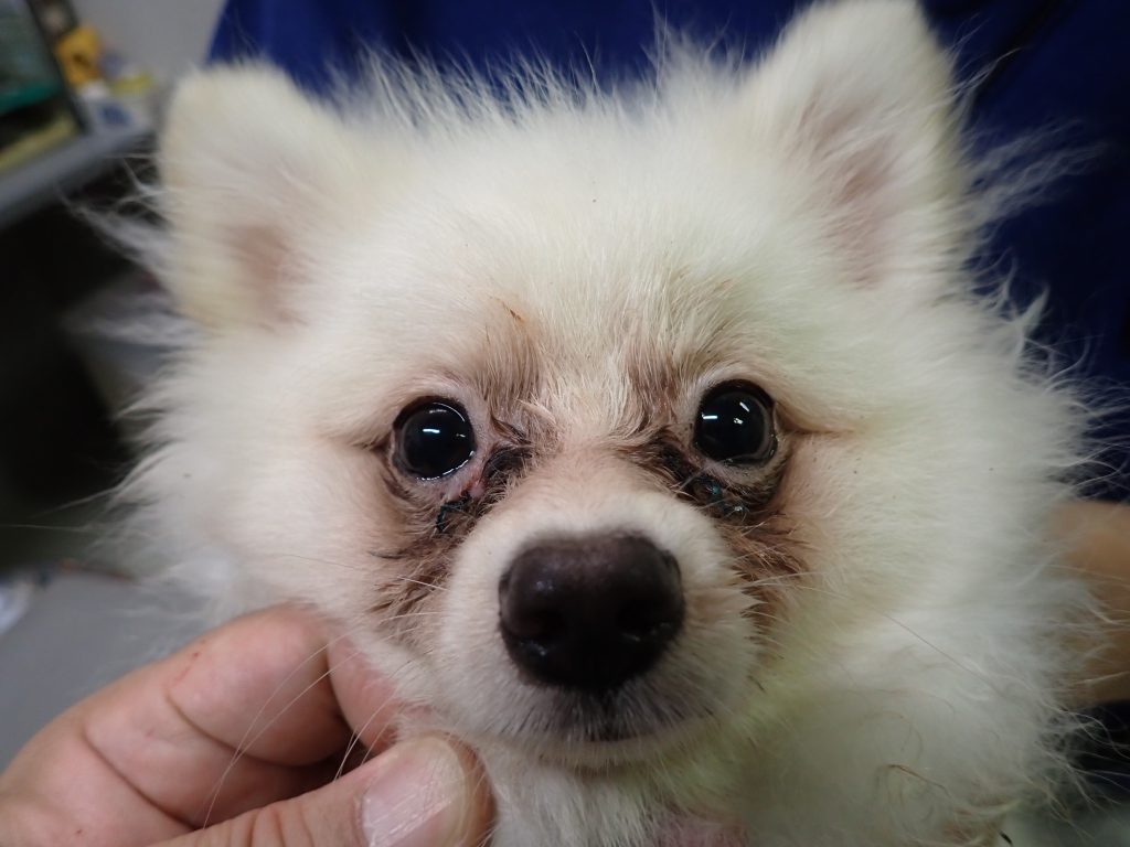 この仔は眼瞼内反症の流涙症(2025年8月12日ブログより)