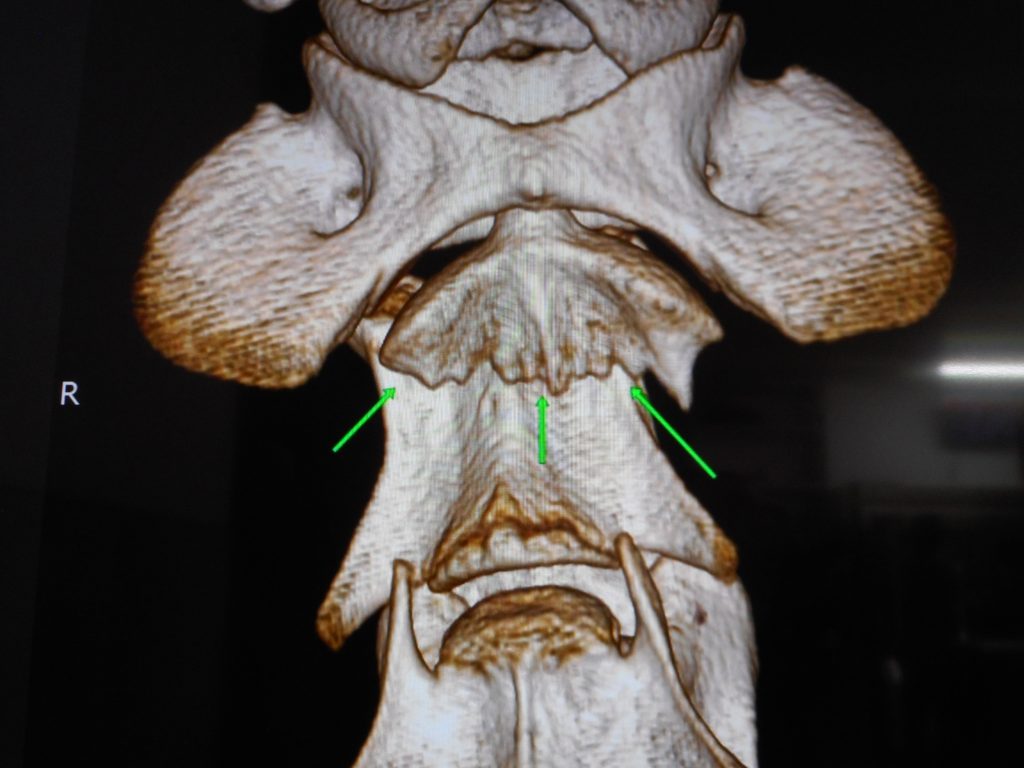 確定診断:第2頸椎骨折、第二頸髄離断