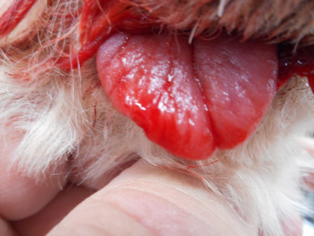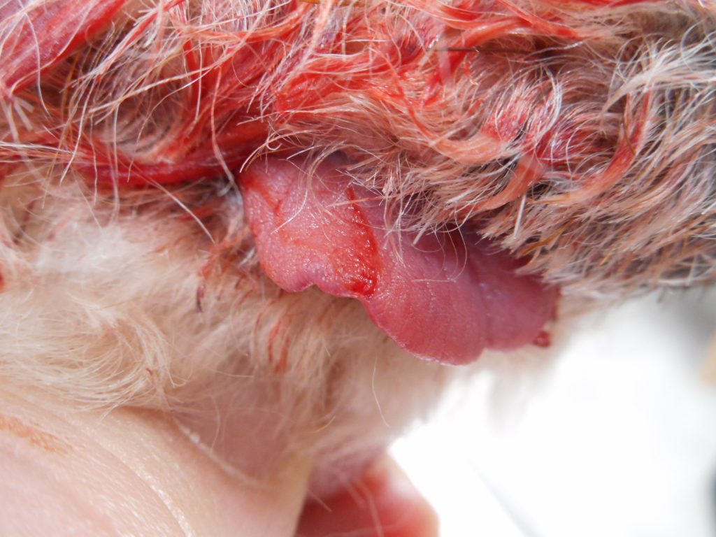 tongue injured by dog grooming.