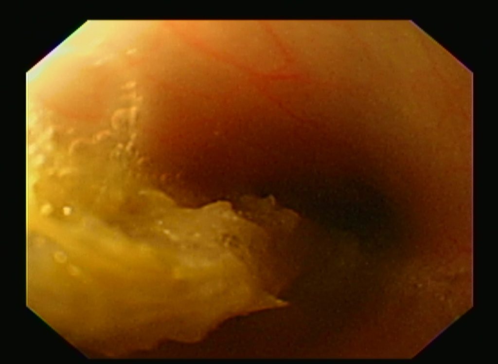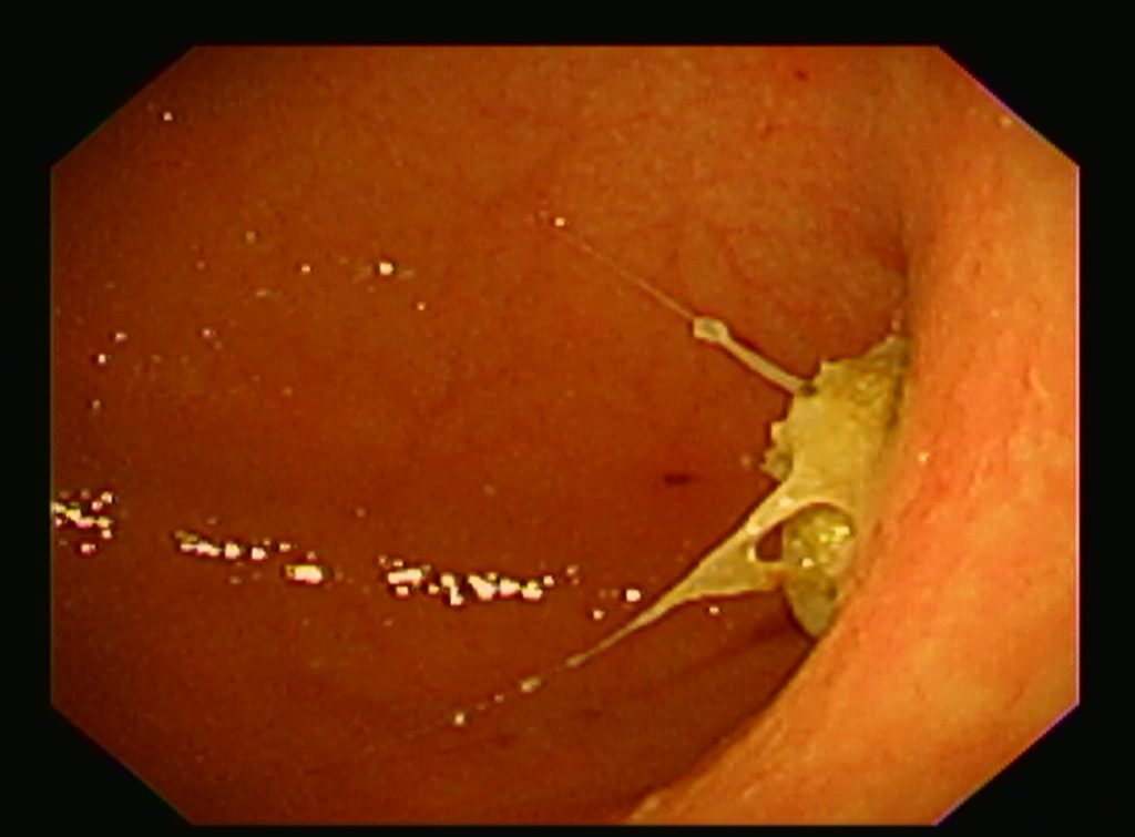 幽門洞(胃の出口前)に毛糸の塊発見