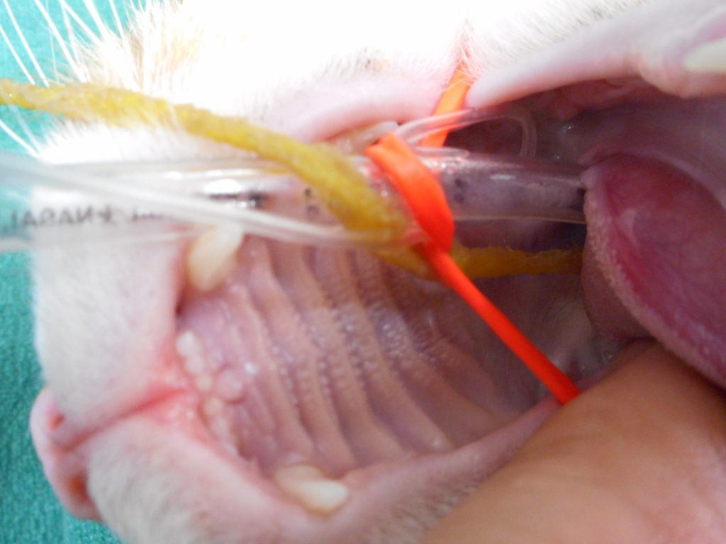 昨日、口から一部その毛糸が出ていたのでひぱっても取れず