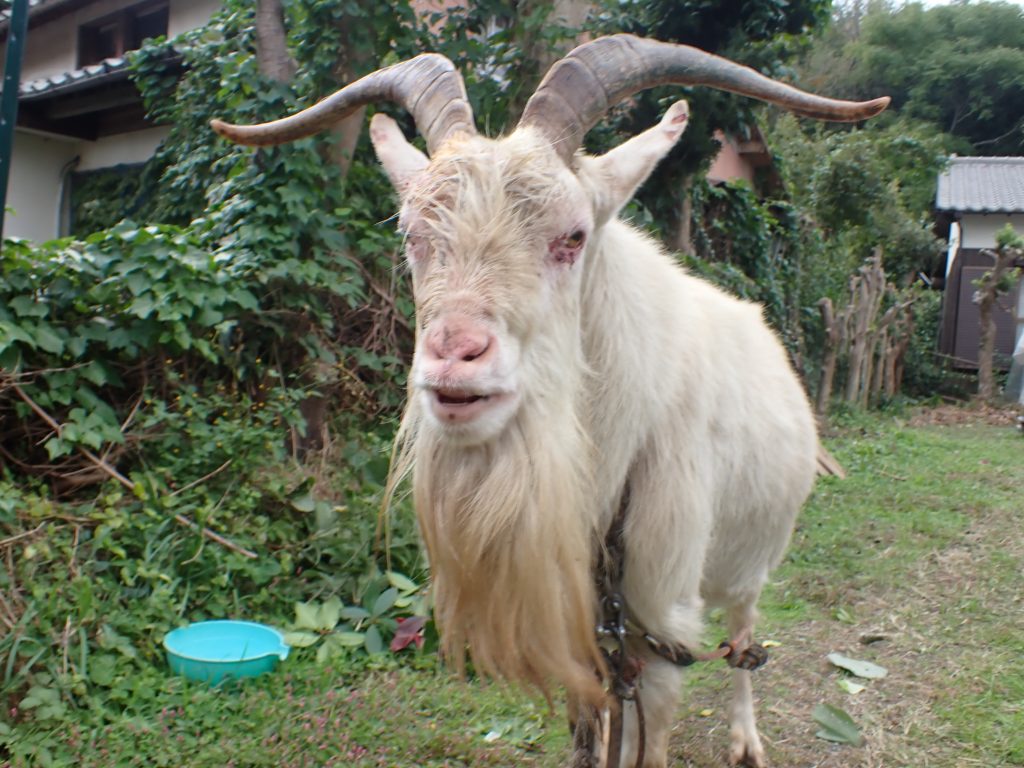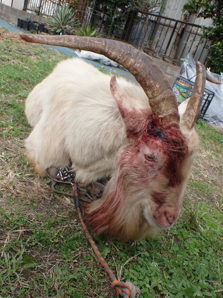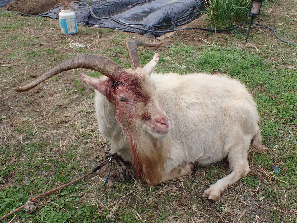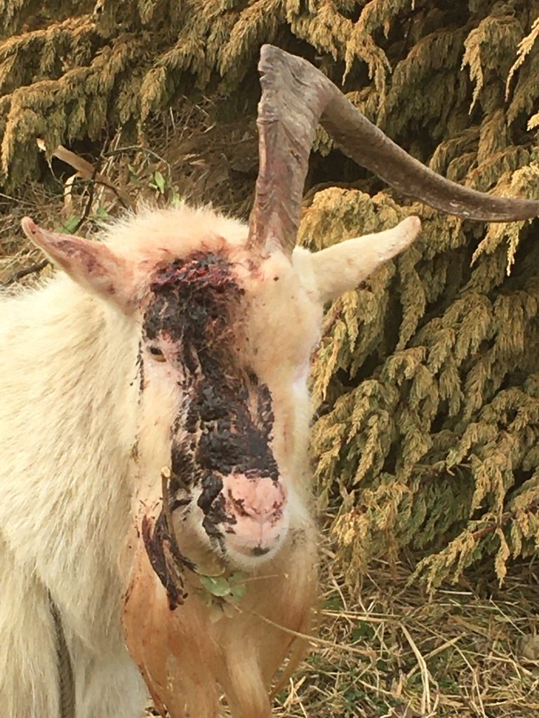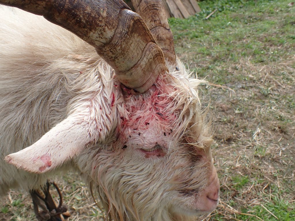 horn injured against male goat