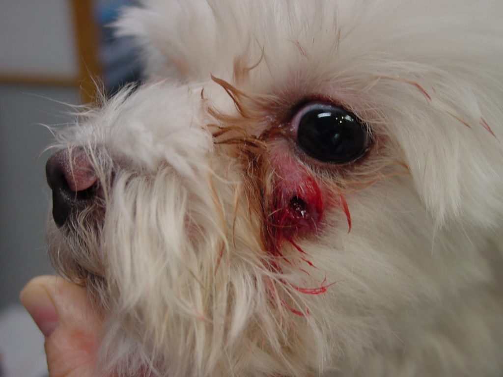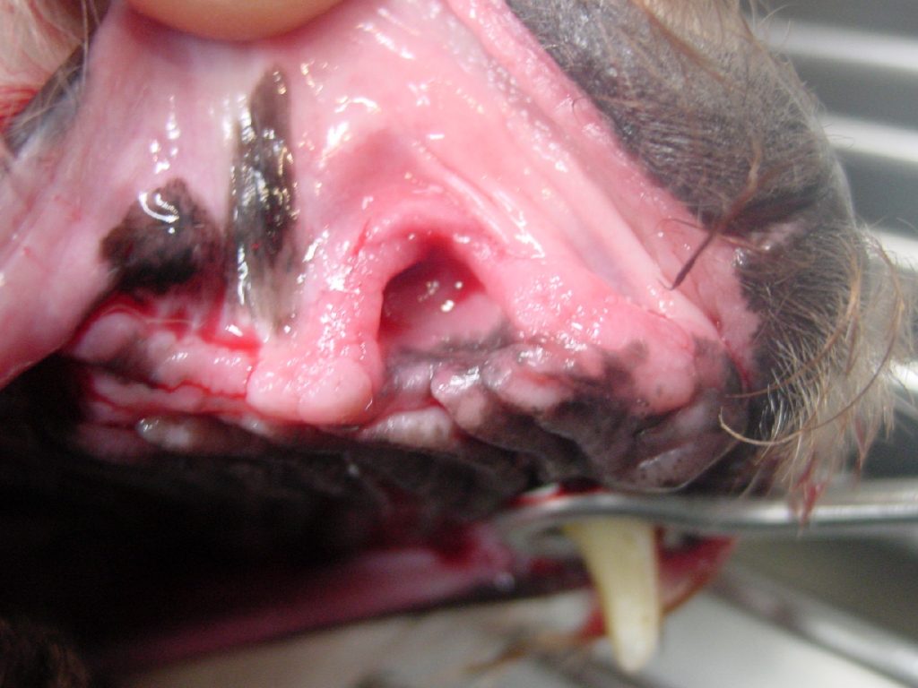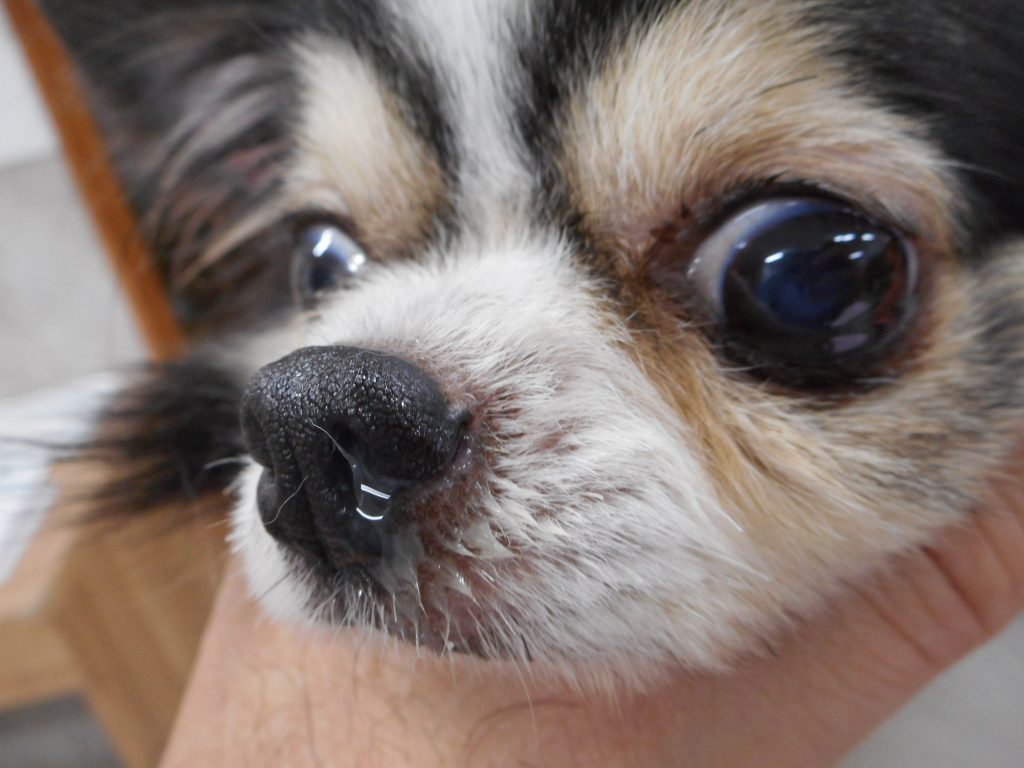 症状は食事やお水を飲むときに鼻に流れてくしゃみし、膿性鼻汁を流すことが多いです