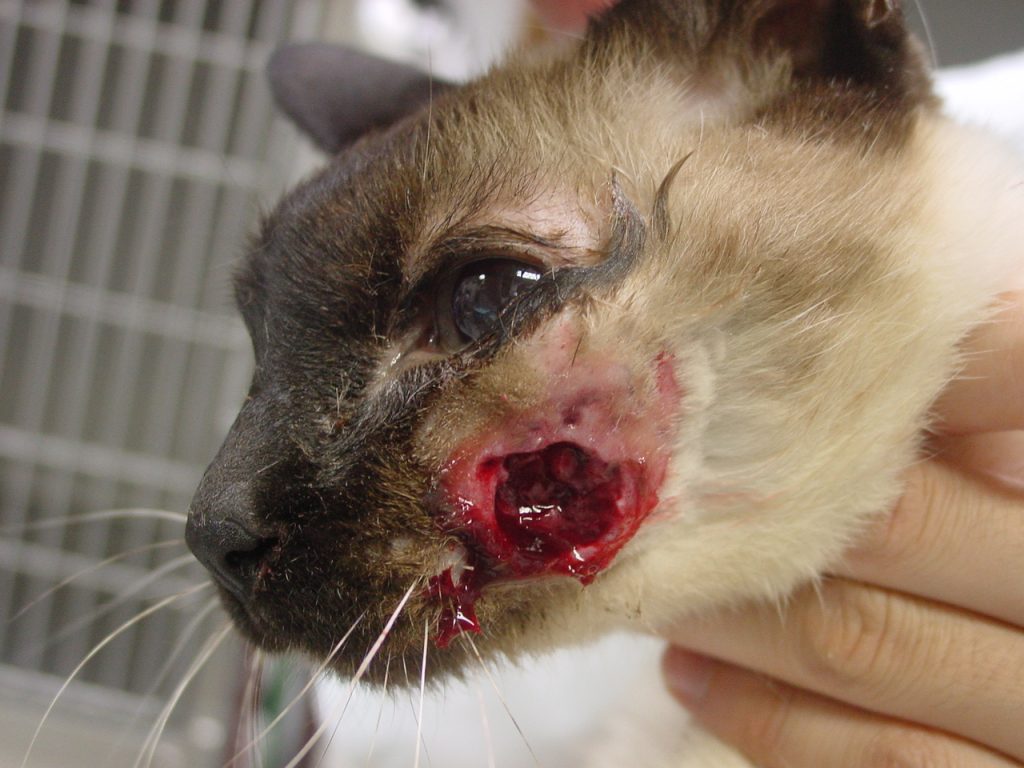 症状は頬が腫れて自壊することが有〼