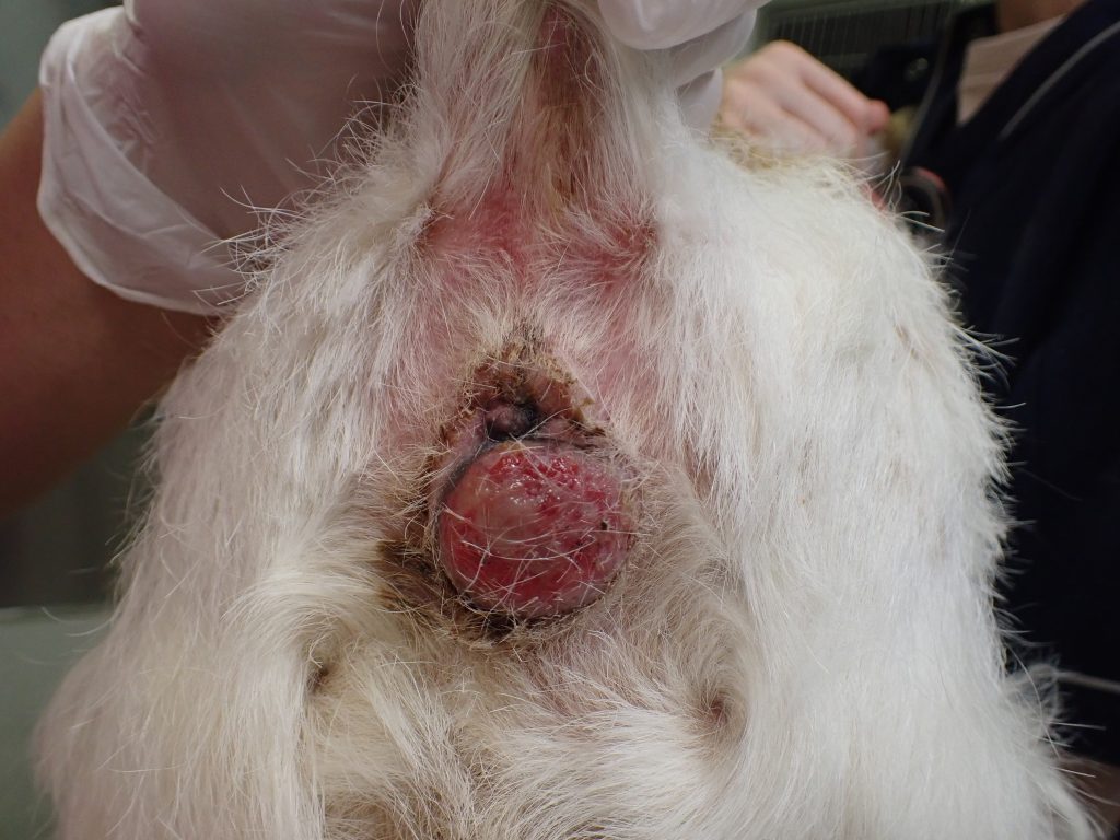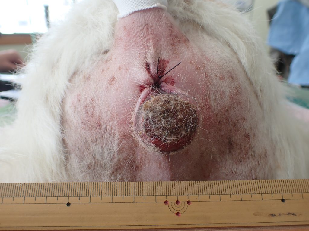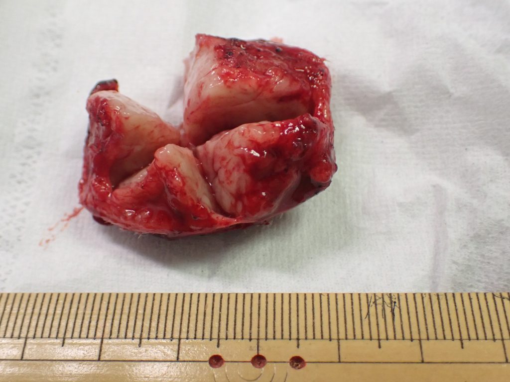 肛門や直腸を傷つけないように慎重に、最大限大きく切除