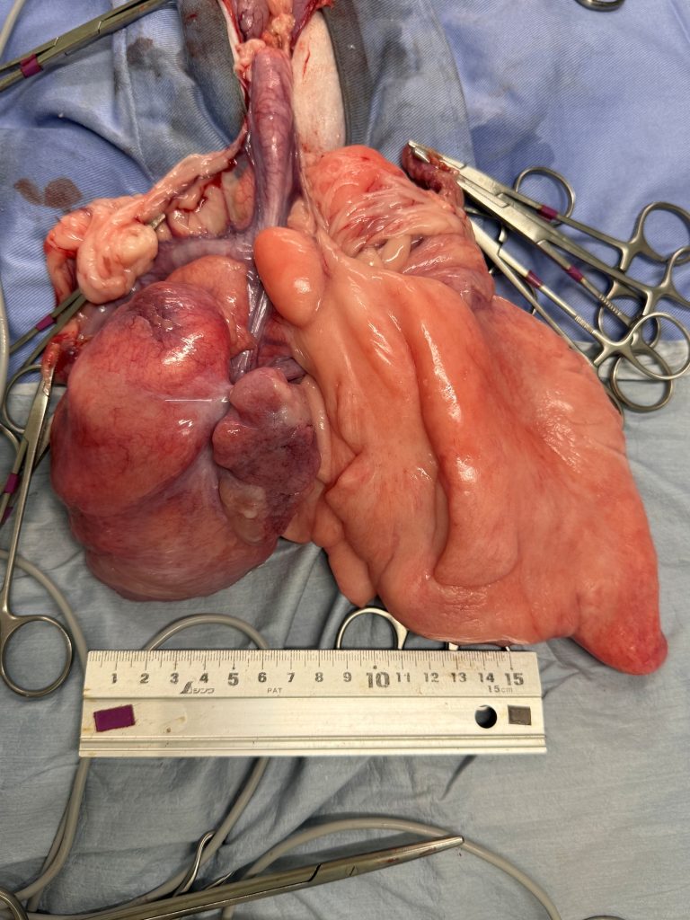 CTでの矢印はこの赤みがった脂肪でしょうね