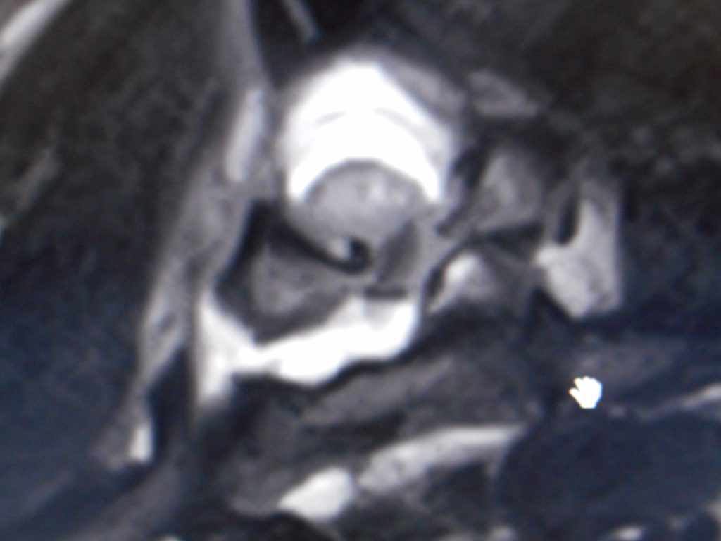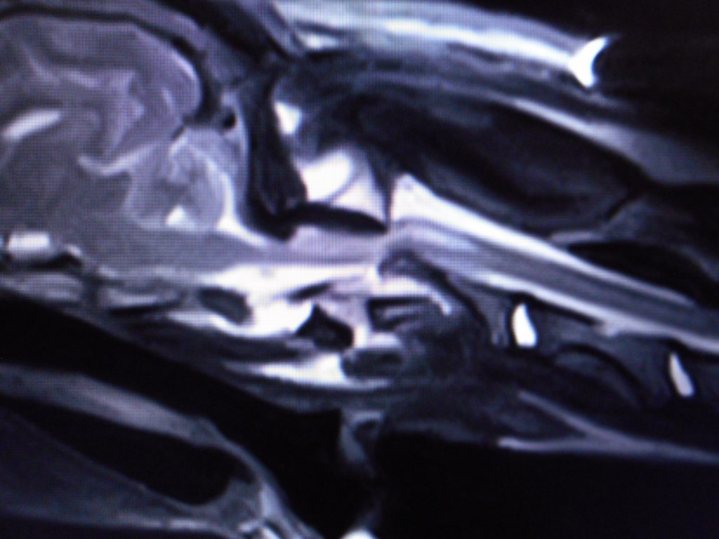 頸椎の骨折ですが、その中にある脊髄神経の確認のため、そのままMRI検査へ